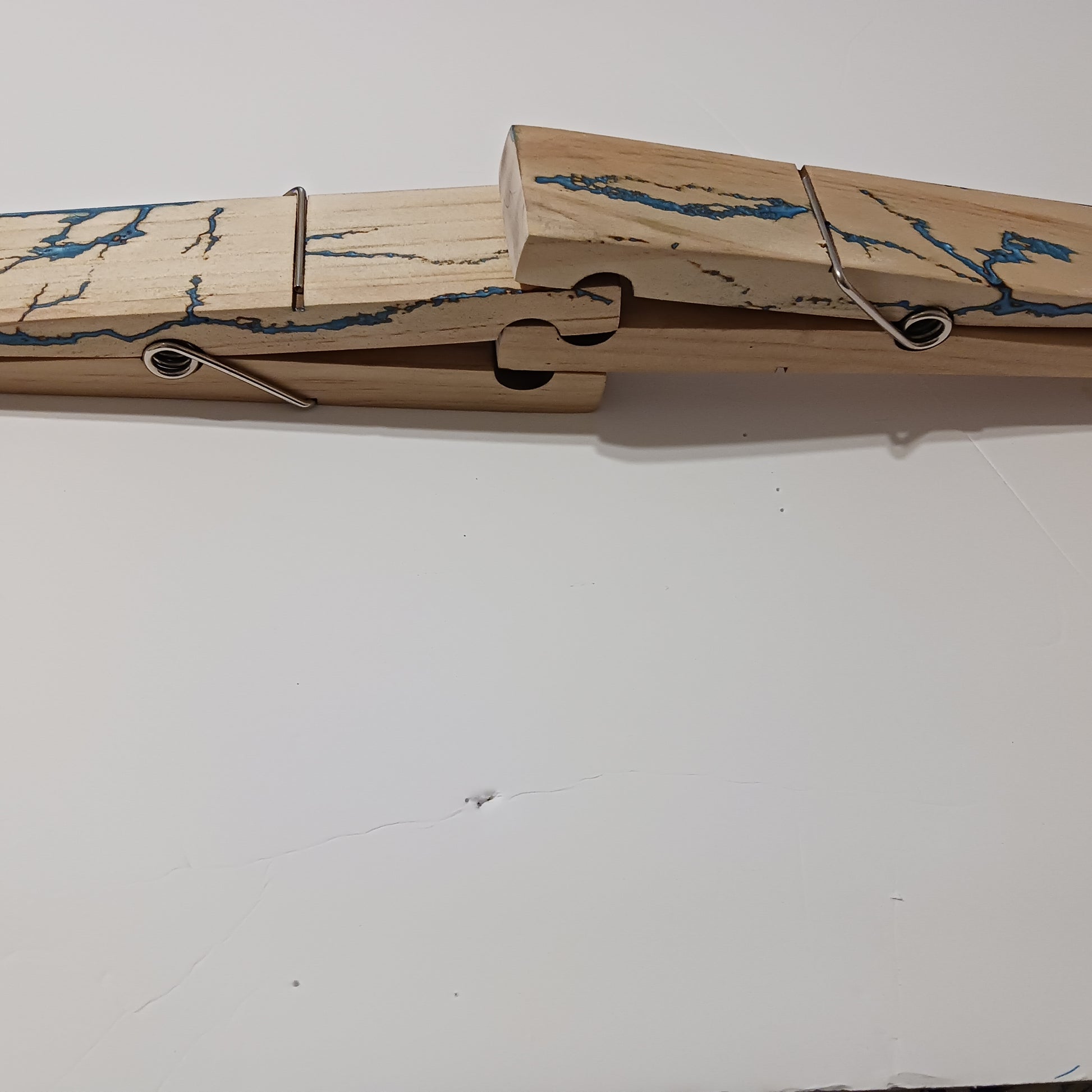 Pair of extra large clothes pins. Fractal burnt, filled with blue epoxy then finished with clear polyurethane.