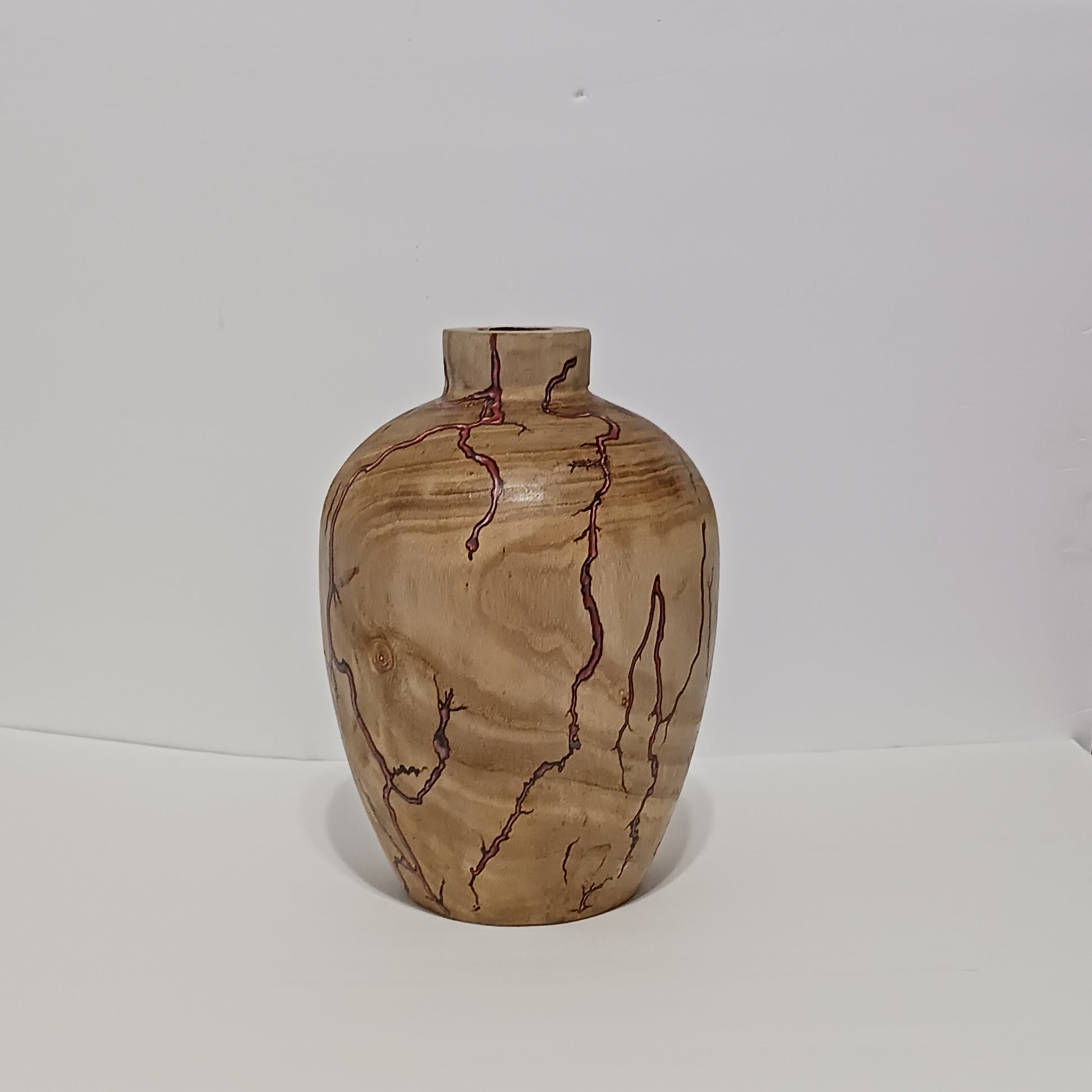 Medium size Vase or Urn. Fractal burnt, pink epoxy fill with a polyurethane top coat.